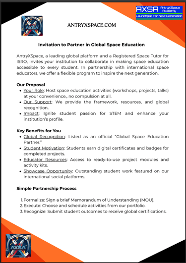 Collaborate with AXSA to bring interactive space education and hands-on research opportunities to your students. Let's shape the next generation of space innovators together.
